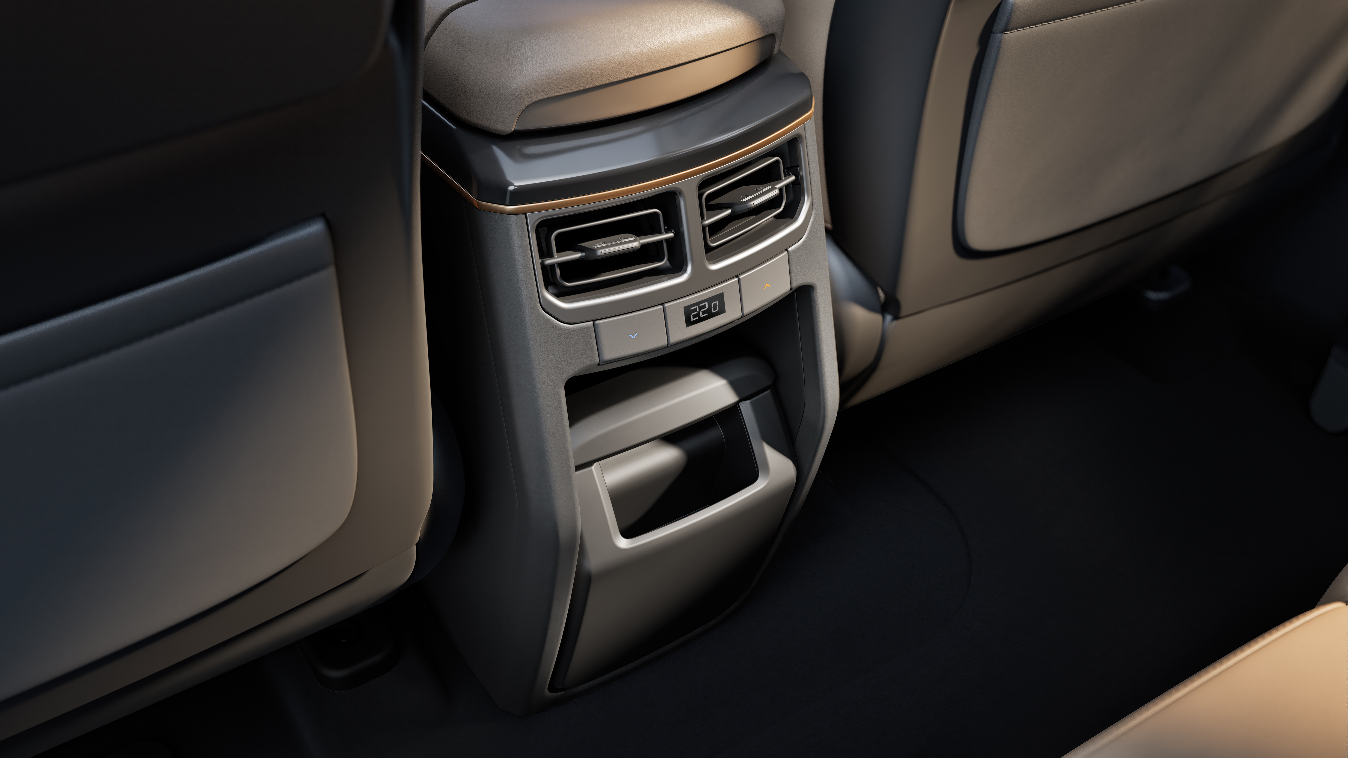 1열에는 넉넉한 콘솔 수납공간을 마련하여 운전자가 자주 사용하는 물건을 쉽게 수납할 수 있도록 하였고, 2열에는 슬라이딩 트레이가 장착된 콘솔이 있어 후석 탑승자의 편의도 고려했습니다.