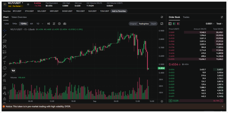 글로벌 거래소 엘뱅크(LBank) 기준으로 WLFI 가격은 약 0.45달러(한화 약 600원대)에서 거래되고 있습니다.