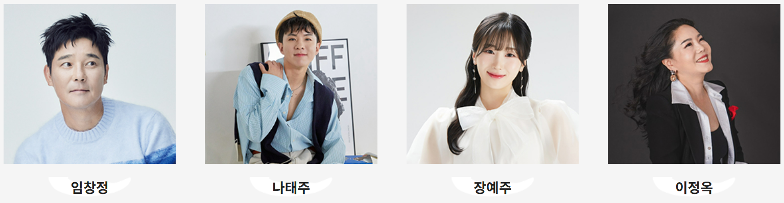✅ 대표 가수 출연: 임창정, 나태주, 장예주, 이정옥