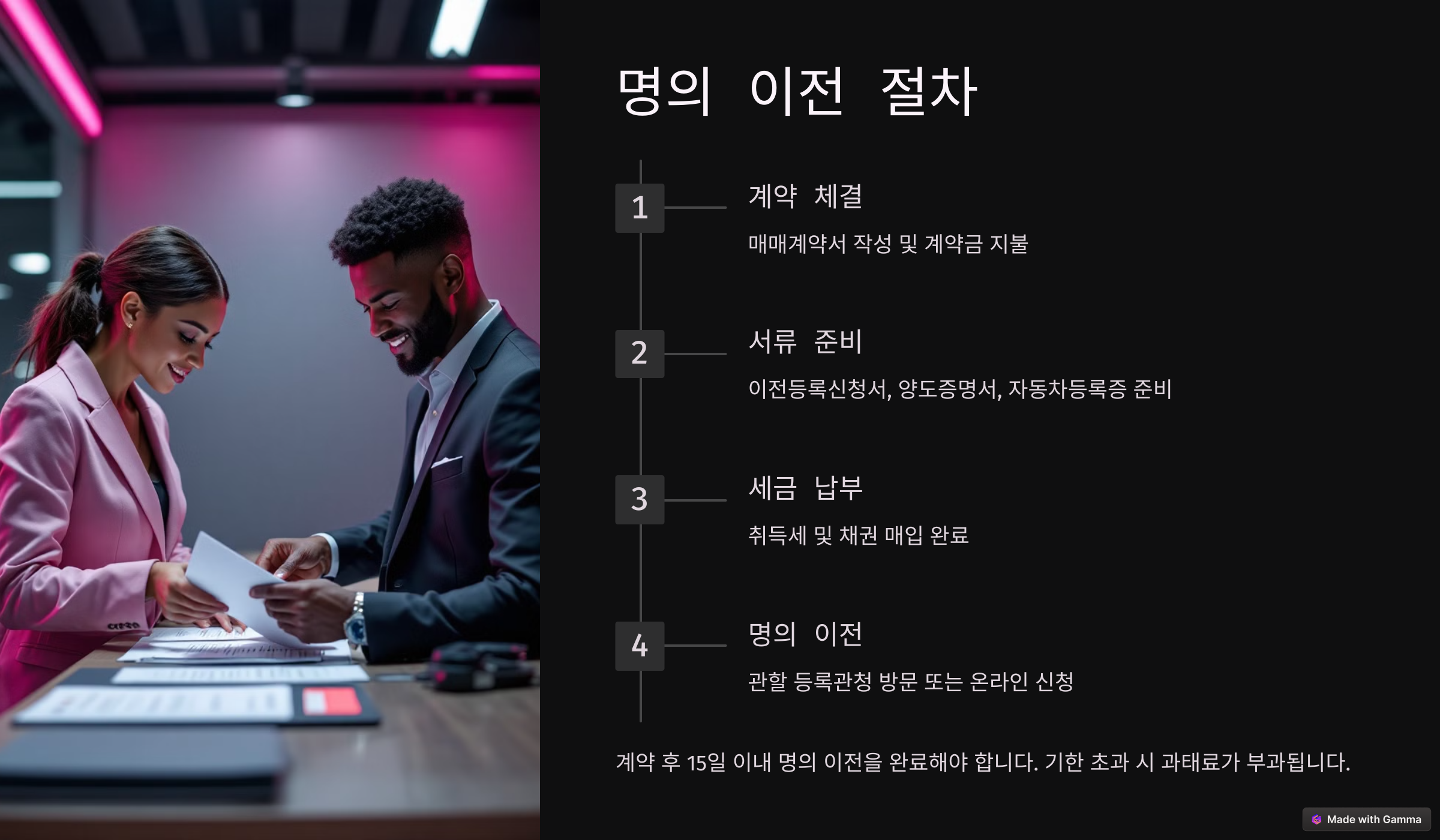 - 5️⃣ 등록세 및 수수료 납부 후 명의 이전 완료